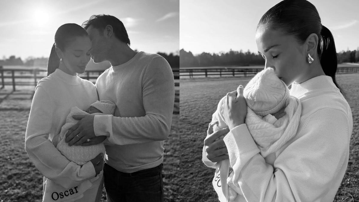 The couple shared a heartwarming series of black-and-white pictures on their Instagram handle to announce the news. The pictures feature the two cradling their baby, who can be seen wearing a blanket with his name on it.
