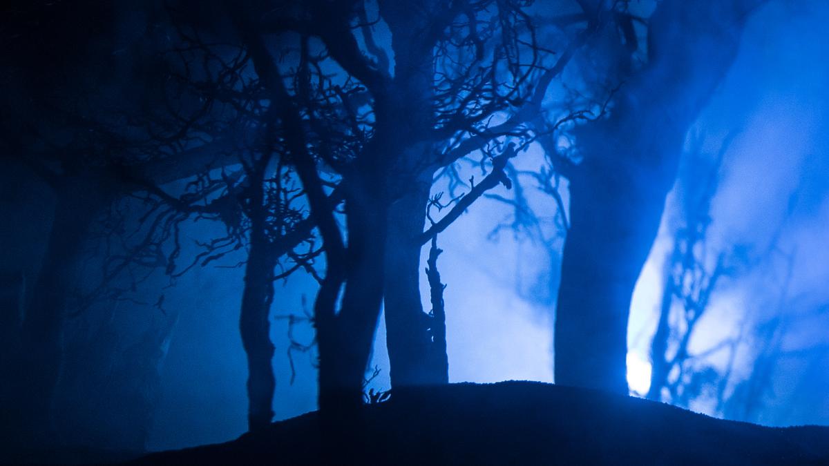 The moonlight filtered through the leaves to give an eerie touch.