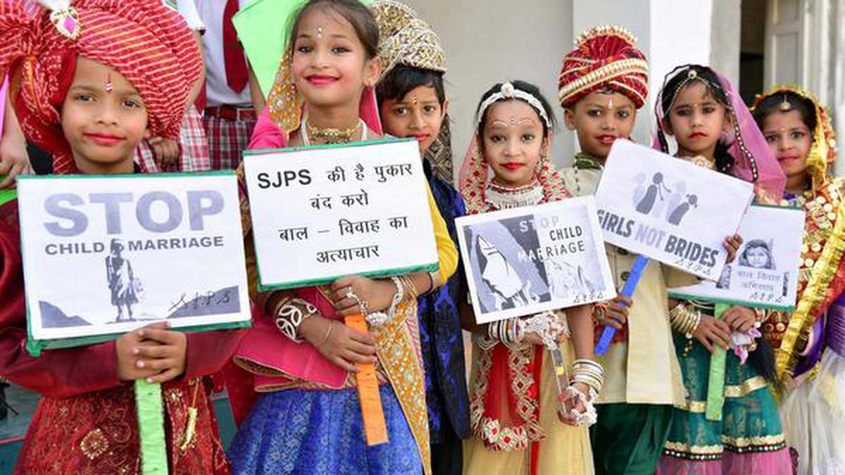 Children hold placards during an awareness campaign against child marriage in Bikaner, Rajasthan. File