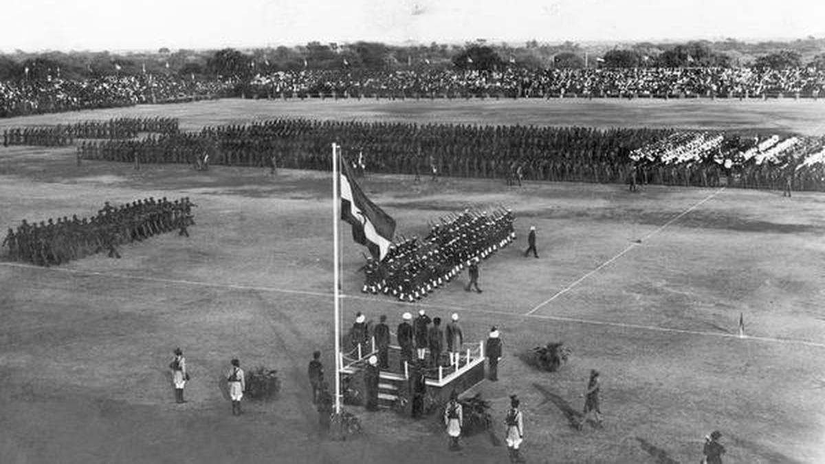 The military review and flag hoisting by then President. Dr. Rajendra Prasad at Irwin Stadium.