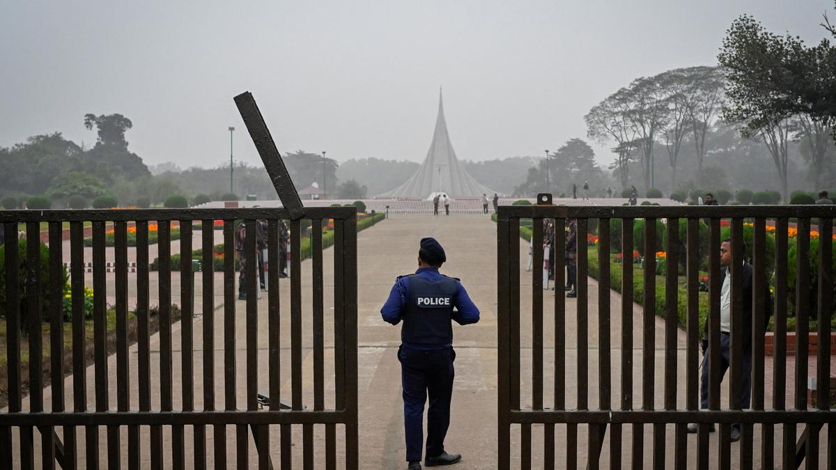 A police officer stands guard at the National Martyrs’ Memorial before the arrival of Bangladesh Nationalist Party (BNP) acting chairman Tarique Rahman in Savar, on the outskirts of Dhaka, Bangladesh, on December 26, 2025.