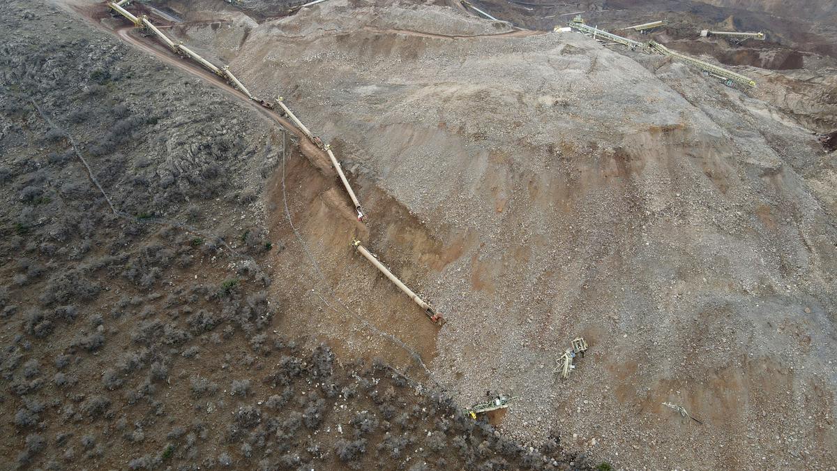 A view of the landslide at the Copler gold mine near Ilic village, eastern Turkey, on February 14, 2024. Hundreds of rescuers on Wednesday pressed ahead with efforts to search for at least nine workers trapped at a gold mine in eastern Turkey that was engulfed by a massive landslide.