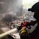 Burned cars and damaged residential buildings are seen after a Russian strike in Zaporizhzhia, Ukraine, Sunday, Oct. 5, 2025.