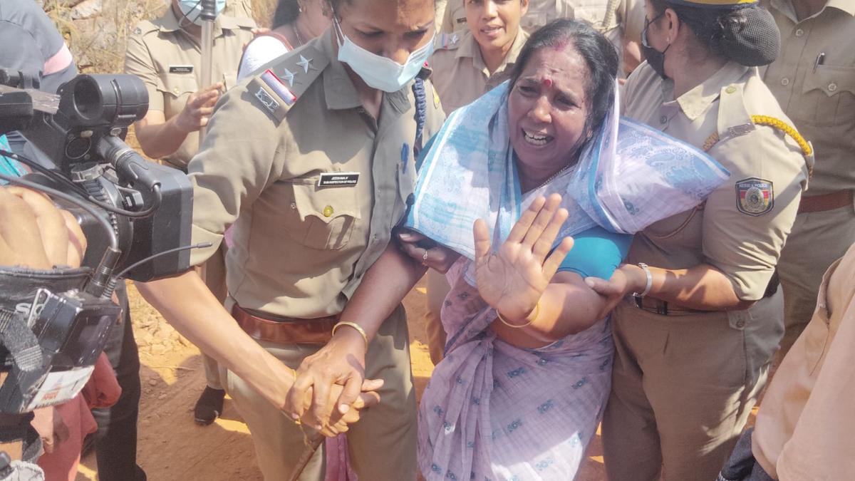 A woman being arrested during the protest against soil mining at Chelannur in Kozhikode on Sunday.