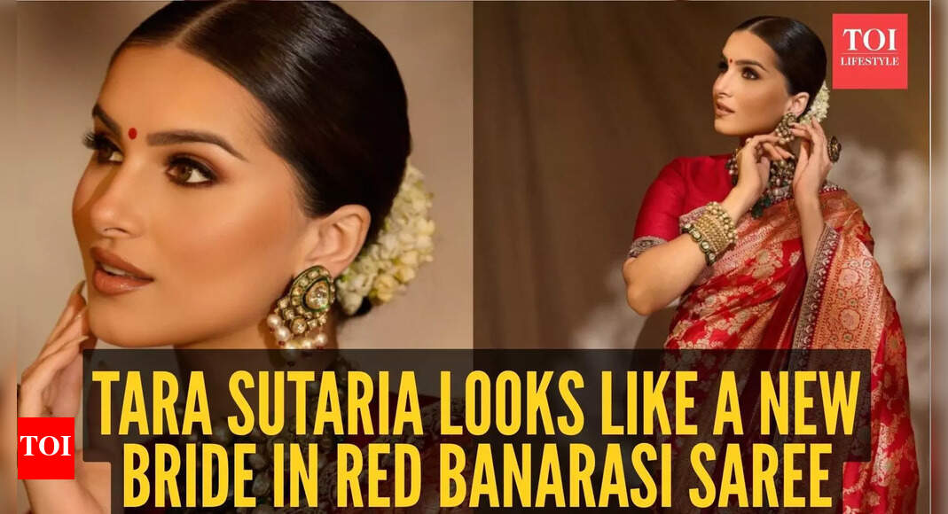 Tara Sutaria has a way of turning every appearance into a cinematic moment and her latest look in a stunning red Banarasi saree is pure poetry in silk. Draped in a creation by Jayanti Reddy Label, Tara looked every bit the radiant bride, sparking whispers that this might just be a dress rehearsal for her future wedding with long-time beau, Veer Pahariya.