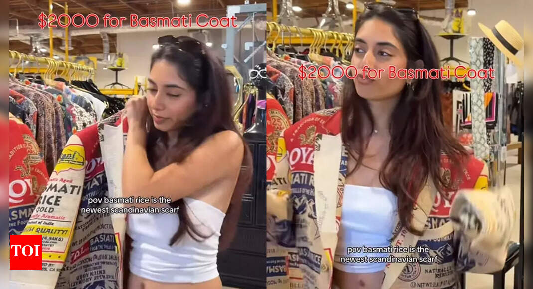 TikTok user Sachi Rajguroo deserves an award for investigative fashion journalism after she posted a video from a store in the US, stunned to discover this couture innovation, a full-length coat stitched from an actual Royal Basmati Rice sack. Yes, the same one your mum cuts and reuses to store onions or makes into a “doormat.” This version, however, is hanging on a boutique rack with a label that screams: “ONE OF A KIND.” And honestly, they’re not wrong. Who else thought rice packaging had this much potential?According to the tag, it’s not just fashion. It’s art. It’s sustainable, upcycled, and probably a metaphor for something deep, like “identity” or “globalisation” but we just see it and think, “Wait… is that my bag of chawal from 2014?”The coat’s design features the iconic Royal Basmati logo, which is now apparently more stylish than Louis Vuitton’s monogram. The original rice weight (“Net wt. 10lbs”) is still proudly displayed on the back like a badge of honour. We assume the model wearing it eats quinoa and has never cooked a grain of basmati in her life.What’s even more hilarious? This coat is priced higher than the actual cost of basmati rice for an entire village for six months. But hey, fashion hurts. And sometimes, it smells faintly of rice.