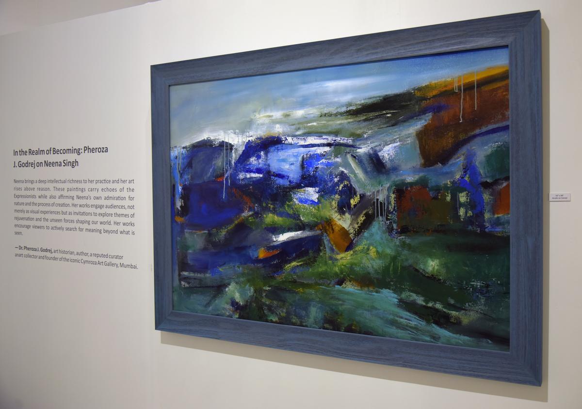 “I came to art because I was exhausted with my thoughts,” Neena shares. “Words were inadequate, which is why painting became a channel.” Her abstractions draw from Nature, not as literal landscapes but as emotional states: the flow of water, the restlessness of wind, or the warmth of light. “Anything from Nature or the landscape serves as a point of departure,” she says. “It’s not about depicting, it’s about expanding that thought.”