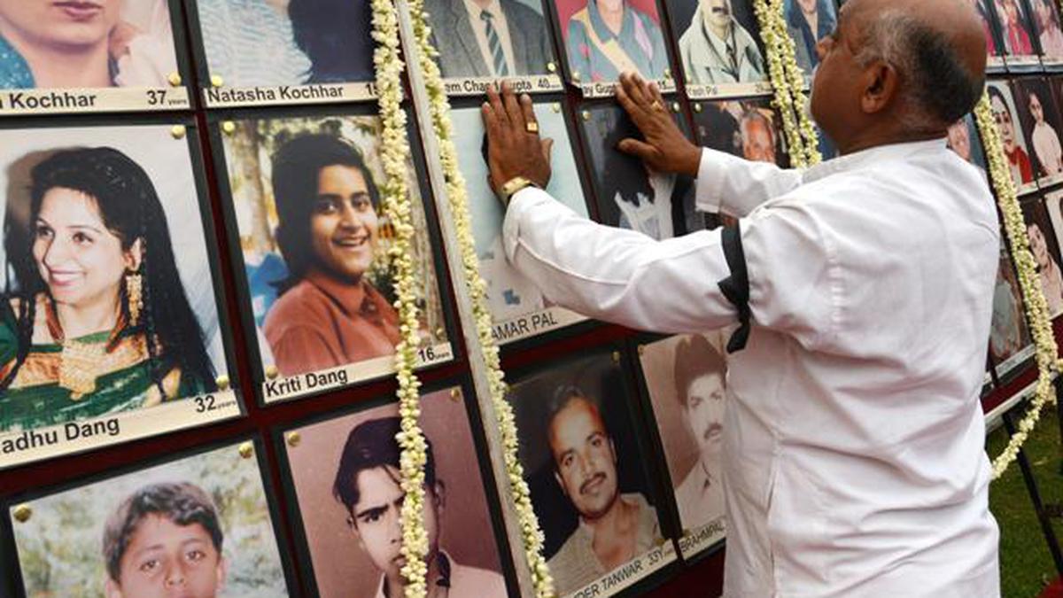 Family members of Uphaar Cinema fire victims pay homage during the 18th anniversary of the tragedy in New Delhi.