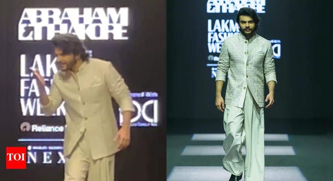 But beyond the love story, the fashion itself held its ground. The collection Veer showcased was titled “Warp & Weft,” a clever reimagining of traditional dhotis and lungis. With a futuristic twist, Abraham & Thakore gave these iconic drapes global appeal, blending heritage and innovation.Veer’s look? A masterclass in understated charm. He stepped onto the runway in relaxed, loose trousers and a bundgala jacket in off-white, complete with three patch pockets and subtle embellishments. The ensemble was effortless yet commanding, giving him space to shine not just as a model, but as a moment-maker.When he blew that kiss, it wasn’t just romance – it was confidence, theatricality, and a dash of runway drama. Fashion lovers may remember the silhouettes and fabric choices, but many will also remember the moment Veer Pahariya turned a ramp into a love story.