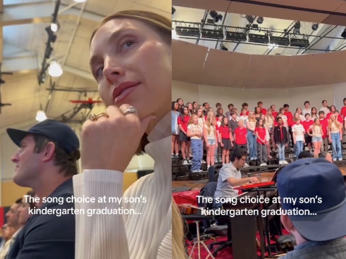 In the clip, the fashion designer was seen sitting in the audience with her husband, Tim Rosenman, and subtly nodding to the performance. She then joined the crowd as they clapped along to the song. “The song choice at my son’s kindergarten graduation…” she wrote over the clip.